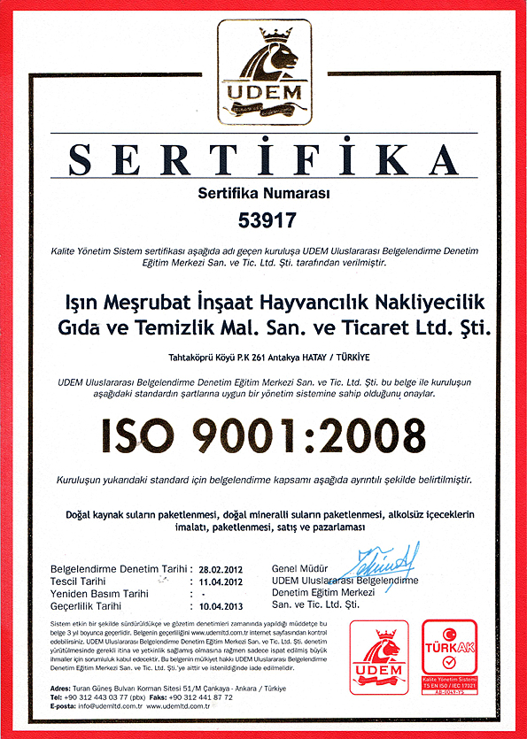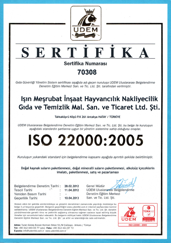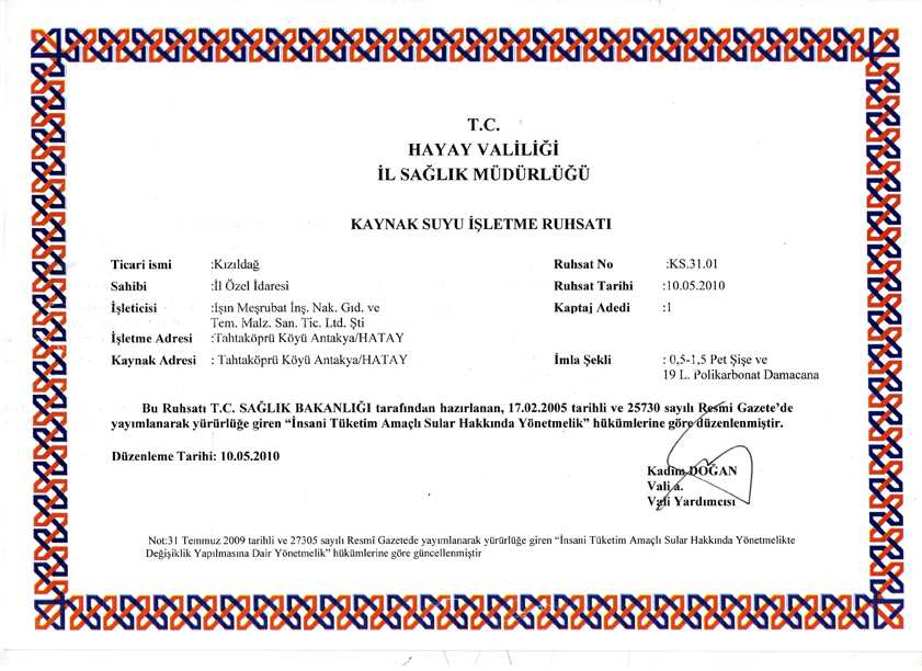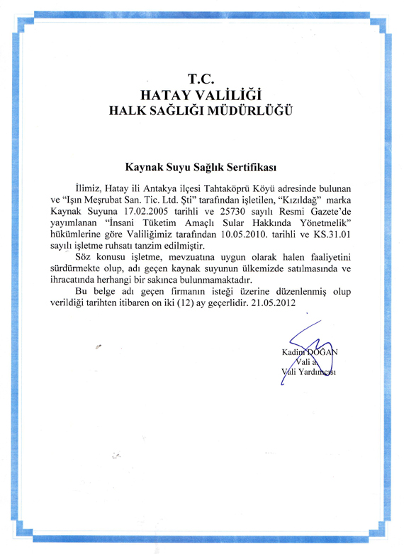 KAYNAK SUYU SAĞLIK SERTİFİKASI